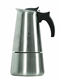 This espresso maker offers a sleek design with stainless steel and satin finish with a 6 cup capacity. Also includes a cool touch handle, which allows the consumer to easily remove the espresso maker from the stovetop. This espresso maker allows you to make and enjoy fresh traditional espresso coffee in minutes.